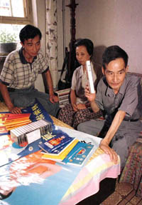 “法輪功”練功者的醒悟(一) ![]() 7月23日,石家莊市棉紡六廠退休工人孫金銘(右)在老伴伊素梅的陪同下,主動將家里有關“法輪功”的書 籍、掛圖及錄音帶等交到家委會。孫金銘三年前因患糖尿病、腎病而開始練“法輪功”后,拒絕醫(yī)生的診治和服藥,身體日漸 消瘦,他老伴只好將藥物攙到飲料中哄著他喝下去,才勉強維持到今天。孫金銘連續(xù)三遍收看中央關于取締“法輪功”的決定 和李洪志真相的報道后,明白了“法輪功”是歪理邪說。新華社記者周文廣攝(傳真照片) |