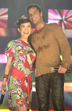 圖文:瑞奇·馬丁演唱會(huì) 李玟現(xiàn)身掀高潮 2001年4月25日 17:12 ![]() 李玫以東瀛武士造型亮相,與瑞奇·馬丁合唱。 中新網(wǎng)新加坡4月25日消息:拉丁“搖臀天王”瑞奇·馬丁(Ricky Martin)昨晚第3度赴新加坡演唱,幾乎所有的觀眾在演出開(kāi)始就一直跟瑞奇“伴舞”到結(jié)束。而嘉賓李玟現(xiàn)身與瑞奇·馬丁合唱,則為演唱會(huì)掀起高潮。 這場(chǎng)演出只有半小時(shí),從瑞奇·馬丁一出場(chǎng),熱情澎湃的觀眾就開(kāi)始興奮尖叫。而當(dāng)每唱完一首歌,觀眾給予掌聲時(shí),瑞奇·馬丁都會(huì)雙手合十,表示感激。 曾經(jīng)于去年10月在瑞奇·馬丁世界巡回演唱會(huì)上擔(dān)任亞洲區(qū)3場(chǎng)特別嘉賓的李玟,這次又再受邀,于演唱會(huì)上與瑞奇·馬丁深情合唱《Nobody Wants To Be Lonely》。二人在演唱完畢后的禮貌互吻,使得全場(chǎng)的觀眾瘋狂尖叫。 會(huì)后,主辦單位贈(zèng)送寫(xiě)上“飛”字的大型中國(guó)字畫(huà)給瑞奇·馬丁,而李玟則由于在現(xiàn)場(chǎng)找不到剪刀,無(wú)法打開(kāi)禮物,于是開(kāi)玩笑說(shuō),希望里面是個(gè)巨型的鉆石,引得在場(chǎng)觀眾開(kāi)懷大笑。 |