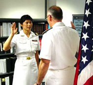圖文:華人翁正欣將出任美太平洋司令部發(fā)言人 2001年6月4日 08:23 ![]() 中新網(wǎng)香港6月4日消息:幼年時(shí)自臺灣移民美國的現(xiàn)役美國海軍少校翁正欣,7月起將出任太平洋美軍司令部的新聞官。 據(jù)“中央社”報(bào)道,翁正欣生于云林水林鄉(xiāng),7歲隨父母移民美國。她說,她很高興到夏威夷任職,因?yàn)樗挠H戚都住在臺灣,而夏威夷離臺灣比較近。她十年前從美國海軍官校畢業(yè),今天晉升少校,同時(shí)領(lǐng)取華府天主教大學(xué)的政治學(xué)碩士學(xué)位。 翁正欣目前在五角大廈任職,職務(wù)是海軍新聞官。 她的父親翁義雄說,正欣選擇從軍,是因?yàn)樗吞郧霸诩偃粘5胶\姽傩K诘伛R里蘭州安納波利斯,太太羨慕官校女生穿著白色制服非常帥氣的樣子,正欣便決定效法,進(jìn)入海官就讀。翁義雄目前在馬里蘭州政府衛(wèi)生局任職。 翁正欣說,當(dāng)時(shí)從臺灣移民美國很不容易,她自認(rèn)能在美國成長非常幸運(yùn),而選擇從軍部份是想要報(bào)效這個(gè)國家。她的丈夫約翰·桑默是她在官校的學(xué)長。 |