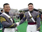 七華裔西點(diǎn)軍校畢業(yè)(附圖) 2001年6月4日 13:54 ![]() 洪偉杰(左)以第十五名的成績(jī)登畢業(yè)生榮譽(yù)榜,臺(tái)北市長馬英九的外甥余靖(右)亦獲多項(xiàng)榮譽(yù) 中新網(wǎng)紐約6月3日消息:位于紐約上州的美國陸軍官校(西點(diǎn)軍校,United States Military Academy atWest Point) 2日在滂沱大雨中舉行2001年畢業(yè)典禮,901名應(yīng)屆畢業(yè)生中,有7名華裔子弟,其中洪偉杰以第十五名的成績(jī)登畢業(yè)生榮譽(yù)榜。 這七名華裔子弟是:洪偉杰、潘安驪、余靖、鄭建明、李之華、陳德凱(譯音)和楊丹尼爾(譯音),其中潘安驪是昨日唯一有華裔血統(tǒng)的女性畢業(yè)生,而余靖是臺(tái)北市長馬英九的外甥。 |