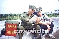 圖:雙癌患者徒步萬里呼吁國人捐獻(xiàn)骨髓 2001年06月28日 19:43 ![]() 解放軍駐京某部前少校軍官隋繼國,以雙癌(腦癌和血癌)之軀徒步萬里,自費(fèi)宣傳骨髓捐獻(xiàn),二十八日抵達(dá)深圳。香港居民黃福榮為隋的壯舉所感動(dòng),中途加入,與隋同行。圖為隋繼國(左)與黃福榮在進(jìn)入深圳市前一起研究行程。中新社記者 馮昶 攝