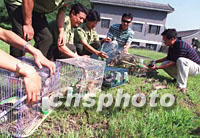 北京人年食麻雀逾百萬 昔日“害鳥”待拯救 2001年08月25日 10:23 ![]() 二十四日,北京市林政稽查大隊(duì)在京郊森林公園放生五百多只麻雀,這些麻雀是昨日在鳥市稽查救回的。中國目前已加大對各種野生動(dòng)物的保護(hù)力度,于去年八月立法規(guī)定:捕殺、出售、食用麻雀已屬違法。中新社記者 張宇 攝