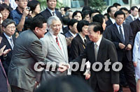 組圖:錢其琛看望出席世界華文傳媒論壇的代表 2001年09月16日 17:21 ![]() 國務(wù)院副總理錢其琛十六日親赴南京紫金山下的國際會議中心,看望出席首屆世界華文傳媒論壇的代表,與香港代表鳳凰衛(wèi)視主席劉長樂等親切握手。中新社記者 王瑤 攝 ![]() 國務(wù)院副總理錢其琛十六日親赴南京紫金山下的國際會議中心,看望出席首屆世界華文傳媒論壇的代表,與《星洲日報》董事蕭依劍、《國際日報》董事長熊德龍(左一)等代表親切握手。中新社記者 王瑤 攝