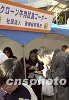 圖:日本力圖喚起人們對國產牛肉的信心 2001年11月19日 15:11 ![]() 日本人一向嗜食牛肉,雖然瘋牛病問題鬧得人心惶惶,但東京“食肉市場節(jié)”上免費品嘗仍吸引了不少牛肉美食家。圖為人們在爭著品嘗受精卵克隆牛肉。中新社記者 陶光雄 攝 |