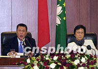 何厚鏵發(fā)表施政報(bào)告 提出20億元紓民困措施 2001年11月20日 17:35 ![]() 澳門特區(qū)行政長(zhǎng)官何厚鏵(左),二十日代表特區(qū)政府在立法會(huì)大樓作二零零二年施政報(bào)告。中新社記者 宗金柱 攝