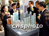 圖:香港地鐵物業(yè)夥同四大房地產(chǎn)商推介西九龍物業(yè) 2001年11月21日 19:41 ![]() 香港地鐵物業(yè)總監(jiān)何恒光(中),11月21日夥同恒隆集團(tuán)主席陳啟宗(左一)、新鴻基地產(chǎn)副主席郭炳江(左二)、九龍倉集團(tuán)主席李唯仁(左三)、永泰亞洲富聯(lián)國際行政總裁鄭維新等共同推介正在建設(shè)的西九龍面積達(dá)1,200萬平方尺的超大綜合發(fā)展項目。中新社記者 任晨鳴 攝 |
