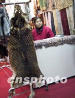 圖:皮草業(yè)為保護(hù)野生動物而改頭換面 2002年01月17日 14:33 ![]() 中國皮草業(yè)正在為“保護(hù)野生動物”而自律。十六日在北京開幕的中國國際裘皮革皮制品交易會上,河北蠡縣硝染廠以犬皮染制的“金錢豹”皮毛制品幾可以假亂真。中新社記者 鄒憲 攝 |