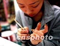 圖:涂畫指甲的時尚女孩兒 2002年01月24日 15:28 ![]() 一位女孩二十四日在北京華威商城的“美甲”店,學習為假指甲描畫花紋,F(xiàn)代的北京女孩不僅經(jīng)常光顧美容院進行皮膚護理,而且日益視指甲的護理與修飾為時尚。中新社圖 劉殊瑾 攝 |