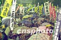 日本上千民眾雨夜游行反對(duì)“有事法制”(多圖) 2002年03月24日 07:30 ![]() 來(lái)自勞動(dòng)、教育、醫(yī)療、宗教等民間團(tuán)體的三千五百多名日本民眾,22日晚在東京市內(nèi)一個(gè)公園里冒雨集會(huì),反對(duì)政府制定“有事法制”。中新社圖 陶光雄 攝
