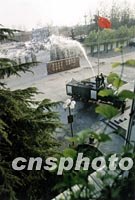 圖:消防演練與美化環(huán)境一舉兩得 2002年03月27日 10:36 ![]() 北京大興武警后勤基地消防隊,三月結(jié)合消防演練任務(wù),派消防車一邊給大樹澆水,一邊訓(xùn)練消防動作,一舉兩得。中新社圖 曹文 攝