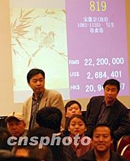 組圖:宋徽宗《寫生珍禽圖》創(chuàng)下中國古字畫天價 2002年04月23日 15:58 ![]() 宋徽宗親筆畫《寫生珍禽圖》二十三日在北京拍賣會上以兩千三百萬元人民幣的天價創(chuàng)下中國古字畫的最高價格。圖為激烈的競拍場面。中新社圖 武仲林 攝