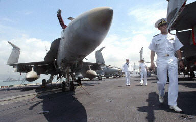 圖:美國航空母艦“小鷹”號今天上午抵達香港 2002年04月29日 17:54 美國航空母艦“小鷹”號今天上午抵達香港,進行補給。這次訪港的美國艦隊一共有5艘軍艦,大約有6000名官兵。“小鷹”號是美國海軍現(xiàn)役軍艦中歷史最久的航空母艦。法新圖