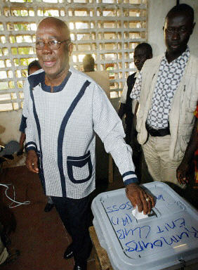 圖:5月14日塞拉利昂舉行總統(tǒng)選舉 2002年05月14日 21:10 5月14日,塞拉利昂舉行了內(nèi)戰(zhàn)結(jié)束后的首次總統(tǒng)選舉,此次共有9個候選人參加總統(tǒng)競選,參加投票的選民預(yù)計將達(dá)到230萬。中新網(wǎng)圖