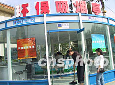 圖:新型環(huán)保吸煙亭亮相京城 2002年05月21日 19:56 ![]() 二十一日,在北京全國農業(yè)展覽館中,一種新型環(huán)保吸煙亭引起了人們的注意。該吸煙亭能迅速過濾有害氣體,去除空氣中的煙味。北京將有計劃地在機場、車站、商場等公共場所安裝這種環(huán)保吸煙亭。中新社記者 章永哲 攝