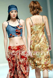 圖:香港時裝節(jié) 模特展示春夏新裝作品 2002年07月10日 09:42 ![]() 來自韓國的時裝設計師李炳周,7月9日在香港舉辦的“亞太時裝設計師表演”專場上展示韓國風情系列。洪少葵 攝