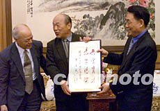 圖:郭東坡會見旅日華僑聯(lián)合總會代表團 2002年07月24日 08:24 ![]() 國務院僑辦主任郭東坡二十三日在北京釣魚臺會見由殷秋雄(左一)、金(羽加軍)(左二)率領的旅日華僑聯(lián)合總會代表團。該團自1999年以來共捐款210萬元人民幣用于建立希望小學等項目。作者:鄭萍萍