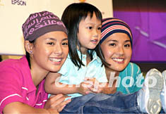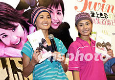 ![]() 樂壇女子組合Twins兩位成員蔡卓妍(右)、鍾欣桐8日1日在香港舉行「愛上色彩之歷險(xiǎn)」寫真集簽名會(huì),大批Twins歌迷到場(chǎng)支持偶像,Twins被一位可愛的小女孩吸引合照。鄧慶樂 攝