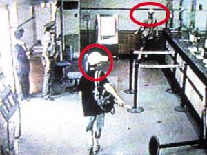 北京懸賞萬(wàn)元征集三元橋銀行劫案嫌犯線(xiàn)索(圖) 2002年08月04日 12:31 ![]() 兩名嫌疑人假作儲(chǔ)戶(hù)排隊(duì)觀察儲(chǔ)蓄所內(nèi)周?chē)闆r ![]() 持刀向柜臺(tái)內(nèi)喊話(huà),另一人沖向柜臺(tái)出入口 中新網(wǎng)北京8月4日消息:7月31日上午9時(shí)35分左右,位于北京朝陽(yáng)區(qū)三元東橋的中國(guó)工商銀行三元橋南儲(chǔ)蓄所發(fā)生了一起持槍搶劫案,兩名犯罪嫌疑人搶劫未遂逃跑。 據(jù)京華時(shí)報(bào)報(bào)道,前天,記者在望京、三元橋等地的居民小區(qū)看見(jiàn)了警方張貼的協(xié)查通報(bào)。目前,根據(jù)相關(guān)資料,案件中現(xiàn)場(chǎng)兩名嫌疑人的特征已被掌握,警方已懸賞1萬(wàn)元向市民征集有價(jià)值的線(xiàn)索。 兩名嫌疑人特征如下: 1.嫌疑人甲,男,25歲左右,身高1.70米左右,體瘦、圓臉、膚色較黑,頭戴白色棒球帽,上穿土黃色T恤衫,下穿灰色帶花格短褲,腳穿白色長(zhǎng)襪,隨身帶一淺黃色袖珍挎包。該人隨身攜帶自制小口徑手槍一支。 2.嫌疑人乙,男,25歲左右,身高1.70米左右,留平頭,膚色較黑,頭戴白色棒球帽,上穿黑灰色T恤衫,下穿白色短褲,腳穿白色長(zhǎng)襪,隨身帶有一黑色挎包。該人持刀。
