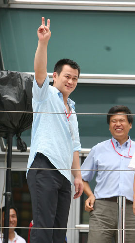 頒獎過后,張國政準備離場,車迷顯然不想這么快就給這位大腕兒“放行”,他們用掌聲和呼喊將這位奧運冠軍時間地長“留”在頒獎臺下,張國政的人氣幾乎壓倒了比賽冠軍。