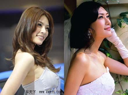 林志玲,以其甜美清麗的外貌及熱辣的身材取代了臺灣美女蕭薔成為臺灣第一名模。在熒幕上,集模特、主持、演員于一身的她留給了我們近乎完美的印象。而凱迪拉克的這位美女車模孫賀麗有這和林志玲同樣嬌媚的容貌,1.77米的身高及85、60、90的三圍更是絲毫不遜色。