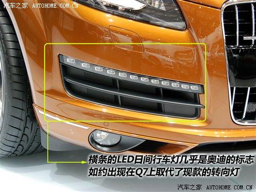 LED燈組是現(xiàn)在最流行的趨勢,從豪華車到微型車都在逐步采用這樣的設計,而奧迪無疑是這方面的先驅之一,應用LED日間行車燈最拿手的也是奧迪,現(xiàn)在它將這一幾乎成了標志的組件裝在了Q7上。