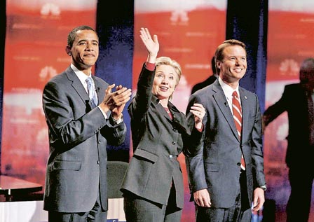 正在沖刺初選的美國(guó)前第一夫人希拉里·克林頓在從拉斯維加斯飛往內(nèi)華達(dá)的競(jìng)選專機(jī)上,出人意料地模仿空姐的口吻,對(duì)媒體記者和競(jìng)選幕僚致以調(diào)侃式的問(wèn)候,向人們展示了“鐵娘子”剛強(qiáng)外表下的幽默風(fēng)趣一面。分析人士指出,希拉里顯然總結(jié)了不久前“眼淚門”的成功經(jīng)驗(yàn),繼續(xù)軟化自己的形象,以此拉近與選民的距離。