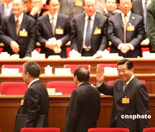 全國(guó)政協(xié)會(huì)議閉幕 賈慶林向委員揮手致意