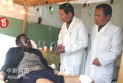 色拉寺一位年紀(jì)很大的僧人癱瘓?jiān)诖,好幾年沒下三樓,屋子里一股臭味。李素芝親自把老人抬下樓來接進(jìn)院里管治、管吃、管喝、管住。四月十日,七十九歲的帕邦喀寺僧人洛桑格瓊被牦牛頂傷后嚴(yán)重感染,到寺里巡診的李素芝立即給院里寫條子,把他和另一腿上長瘤的僧人送院免費(fèi)治療。老人眼含熱淚地說!耙姷侥憔陀邢M,你是我們的活菩薩!”