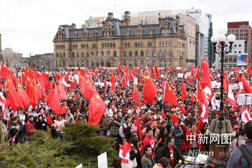 中新網(wǎng)渥太華4月13日電 4月13日下午,加拿大首都渥太華國會山廣場被鮮艷的中加兩國國旗和奧林匹克旗幟淹沒,近萬名來自加拿大各地的華人聚集在一起,舉行“宣傳西藏真相,維護(hù)祖國統(tǒng)一”大型集會活動。以下是渥太華《七天新聞》提供給本網(wǎng)的發(fā)自現(xiàn)場圖片報(bào)道。