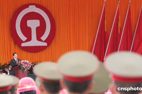 胡錦濤說(shuō),青藏鐵路建成通車(chē),是中國(guó)社會(huì)主義現(xiàn)代化建設(shè)取得的又一個(gè)偉大成就。他指出,建設(shè)青藏鐵路是幾代中國(guó)人夢(mèng)寐以求的愿望,中國(guó)共產(chǎn)黨和政府始終高度重視。一九五八年,黨中央決定建設(shè)青藏鐵路西寧至格爾木段,一九八四年五月這段鐵路建成通車(chē)。進(jìn)入新世紀(jì),黨中央從推進(jìn)西部大開(kāi)發(fā)、實(shí)現(xiàn)各民族共同發(fā)展繁榮的大局出發(fā),作出了修建青藏鐵路格爾木至拉薩段的重大決策,提出了建設(shè)世界一流高原鐵路的目標(biāo),F(xiàn)在,經(jīng)過(guò)全體建設(shè)者和各方面的頑強(qiáng)拼搏、艱苦奮斗,幾代中國(guó)人特別是沿線各族干部群眾的心愿終于實(shí)現(xiàn)了!