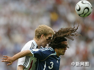 德國(guó)與阿根廷兩大足球豪門在世界杯歷史上兩次決賽相遇,各勝一場(chǎng),第三度的交手今天在二00六年德國(guó)世界杯第一場(chǎng)四分之一決賽中上演。這場(chǎng)世紀(jì)大戰(zhàn),開(kāi)場(chǎng)并沒(méi)有上演精彩的攻勢(shì)足球,雙方打得非常拘謹(jǐn),唯一一次亮點(diǎn)就是德國(guó)隊(duì)的施奈德助攻,巴拉克后排插上頭球攻門,可惜力量稍大偏出門柱。