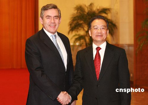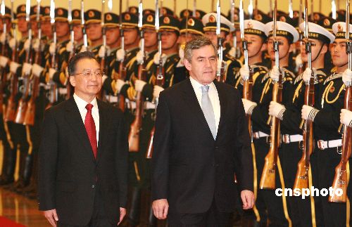 一月十八日,中國國務(wù)院總理溫家寶在北京人民大會堂主持儀式歡迎英國首相戈登·布朗訪華。中新社發(fā) 廖文靜 攝