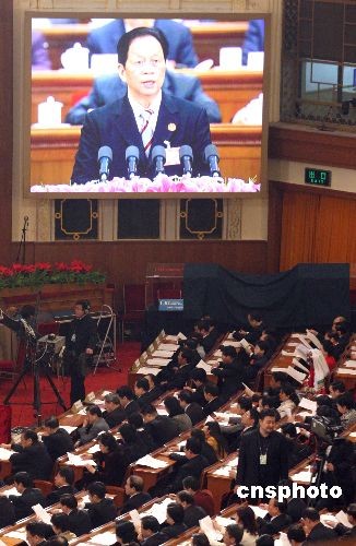 3月10日上午,十一屆全國人大一次會議第三次全體會議在北京人民大會堂舉行,全國人大代表聽取最高人民法院院長肖揚(yáng)作最高人民法院工作報告。中新社發(fā) 張宇 攝