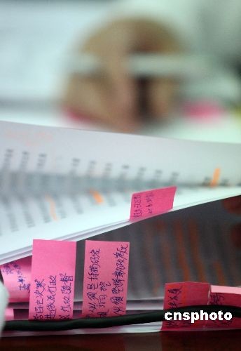3月5日,出席十一屆全國(guó)人大一次會(huì)議的澳門代表團(tuán)舉行全體會(huì)議,審議政府工作報(bào)告。一位代表審議報(bào)告一絲不茍,將自己的看法寫(xiě)在小紙條上,粘貼在報(bào)告文件有關(guān)段落旁,以供審議發(fā)言時(shí)引用。中新社發(fā) 張宇 攝