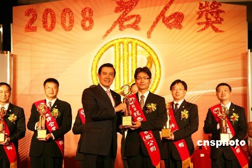 臺灣十二家中小企業(yè)和六家海外臺商企業(yè)獲二00八年度“磐石獎”,馬英九十月二十日下午為獲獎企業(yè)頒獎。目前臺灣共有中小企業(yè)一百二十三萬七千余家,占臺灣企業(yè)總數(shù)的百分之九十七點(diǎn)六,就業(yè)人數(shù)近八百萬人,占臺灣就業(yè)人數(shù)的百分之七十七。中新社發(fā) 楊旭 攝