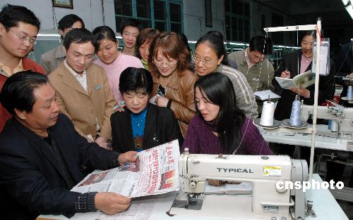 10月22日晚,山西運(yùn)城一民營企業(yè)的員工在車間學(xué)習(xí)“十七大”會(huì)議精神,并進(jìn)行討論發(fā)言。中新社發(fā) 黃文鵬 攝
