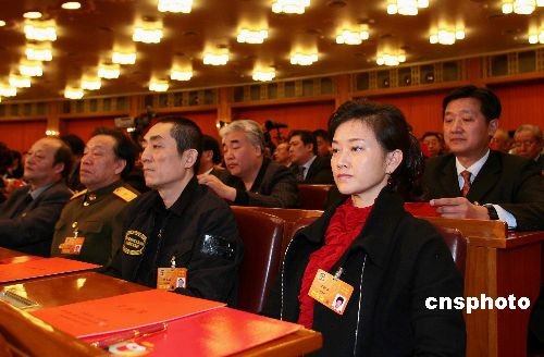3月13日下午3時,全國政協(xié)十一屆一次會議第四次全體會議在北京人民大會堂舉行,會議的主要議程是選舉政協(xié)第十一屆全國委員會主席、副主席、秘書長和常務(wù)委員。宋祖英與張藝謀相鄰而坐認(rèn)真聽會。中新社發(fā) 盛佳鵬 攝