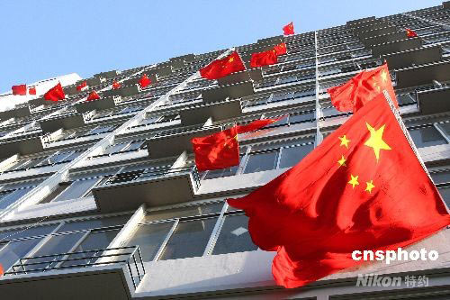 4月22日,北京理工大學(xué)多處宿舍樓紛紛掛出國旗,理性表達(dá)愛國熱情,其中毗鄰?qiáng)W運(yùn)場(chǎng)館的北理工體育館新1樓南側(cè)掛有近70面國旗。據(jù)了解,該樓住有各學(xué)院的本科生逾2000人,上周六便有人掛起國旗,21日午后雨過天晴后不少宿舍紛紛響應(yīng)。該校新聞發(fā)言人賀亞蘭表示,學(xué)生在自己宿舍掛國旗,是理性的正常愛國舉動(dòng)。中新社發(fā) 鄭雄增 攝