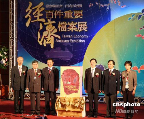 十月五日,《百件經(jīng)濟(jì)重要檔案展》在臺(tái)北中山南路二十號(hào)的圖書館開幕。展出的一百一十一則檔案,是從近六百萬件檔案中嚴(yán)選、再經(jīng)六位專家學(xué)者審定才展示給觀眾的。圖為展覽開幕式。中新社發(fā) 耿軍 攝