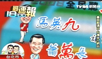 影片配音又說(shuō):“2008全民聽(tīng)九萬(wàn),馬英九、蕭萬(wàn)長(zhǎng)讓您久等了!”