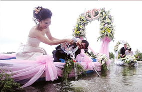 水下婚禮、自行車婚禮、熱氣球婚禮……現(xiàn)在婚禮上的花樣越來越多,而在婚禮現(xiàn)場上演一場屬于自己的愛情電影,如今成了80后白領(lǐng)新人的最新流行時(shí)尚……