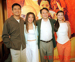 導演李安、影星周潤發(fā)、楊紫瓊、及章子怡26日在香港出席影片“藏龍臥虎 ”記者會。中新社傳真 鄧慶樂 攝