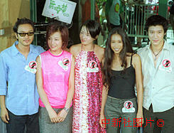 圖文:張國榮冷眼待傳媒 2000年8月18日 09:32 ![]() 歌星張國榮、容祖兒、梁詠琪、莫文蔚、王力宏17日在香港為“太陽計劃2000”電影“無煙草”作宣傳,該片將匯聚香港影藝明星,為年青人揭開吸煙的可惡面目。中新社傳真 鄧慶樂 攝