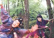 導(dǎo)演親自傳授劍法 《笑傲江湖》拍攝近尾聲 2000年9月7日 16:59 ![]() 中新網(wǎng)北京9月7日消息:央視40集電視連續(xù)劇《笑傲江湖》的拍攝已近尾聲。預(yù)計(jì)9月下旬即可正式關(guān)機(jī)。 目前,全劇的拍攝已進(jìn)入最精彩的階段,令狐沖的絕活兒“獨(dú)孤九劍”頻頻亮相,而把這劍法傳授給他的,并非是武林高人,而是該劇導(dǎo)演黃健中。 為了使令狐沖的劍術(shù)亮相精彩,黃導(dǎo)特意設(shè)計(jì)了幾場(chǎng)精彩的武打戲。令狐沖的扮演者李亞鵬不僅扮相英俊,其劍術(shù)“速成”也很到位。他和于承惠飾演的風(fēng)清揚(yáng)的對(duì)手戲十分火爆。 此外金庸對(duì)《笑傲江湖》的拍攝十分關(guān)注,不時(shí)派人詢問(wèn)進(jìn)度,他對(duì)茅威濤飾演的東方不敗尤為滿意,認(rèn)為她演出了神韻。 《羊城晚報(bào)》報(bào)道說(shuō),拍攝至今,金大俠還未看過(guò)央視版的樣片,所以在該劇停機(jī)之前,他打算再到劇組探班。據(jù)悉,該劇9月關(guān)機(jī)后,即返京進(jìn)行后期制作,可望明年春天和觀眾見(jiàn)面。(完) 相關(guān)報(bào)道:《笑傲江湖》拍攝工作繼續(xù)進(jìn)行 相關(guān)報(bào)道:《笑傲江湖》劇組遭遇火災(zāi) |
