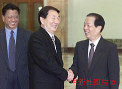 中國國務院總理朱镕基12日離開北京,前往日本、韓國訪問,并出席在漢城舉行的第三屆亞歐會議。國務院副總理錢其琛等在北京人民大會堂送行。中新社記者 毛建軍 攝