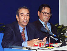 來自亞洲二十四個國家和澳大利亞的政要、前政要,日前在風(fēng)景優(yōu)美的海南博鰲水域,參加為籌備“亞洲論壇”而召開的“亞洲論壇專家學(xué)者會議”,前東盟秘書長辛格先生(左)被任命為博鰲“亞洲論壇”臨時秘書長。中新社記者 關(guān)向東 攝