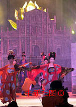 圖文:慶澳門回歸一周年文藝晚會3 2000年12月12日 09:35 ![]() 大三巴牌坊為背景的古代服飾表演.為慶祝澳門回歸一周年,中央電視臺心連心藝術(shù)團十一日晚在澳門蓮花廣場舉辦“流光溢彩濠江情”文藝晚會,圖為以大三巴牌坊為背景的古代服飾表演。中新社傳真 宗金柱 攝