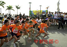 圖片:澳門(mén)中華總商會(huì)青年委員會(huì)舉行一系列慶祝活動(dòng) 2000年12月18日 15:42 ![]() 澳門(mén)回歸一周年到來(lái)之際,澳門(mén)中華總商會(huì)青年委員會(huì)十七日舉行一系列慶;顒(dòng),圖為在觀音像前舉辦的環(huán)湖長(zhǎng)跑比賽。中新社傳真 宗金柱攝