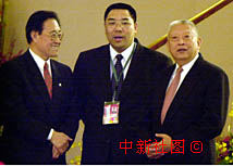 圖片:董建華與宗光耀、長崔世安一起交談 2000年12月19日 21:33 ![]() 中華人民共和國澳門特別行政區(qū)成立一周年慶祝晚宴十九日在澳門綜藝館舉行,香港特區(qū)行政長官董建華(右一)在宴會(huì)上與澳門中聯(lián)辦副主任宗光耀、澳門特區(qū)社會(huì)文化司司長崔世安(中)一起交談。中新社傳真 宗金柱 攝