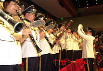 澳門警察銀樂隊在特區(qū)政府成立一周年慶祝大會開幕時演奏國歌。中新社傳真宗金柱攝